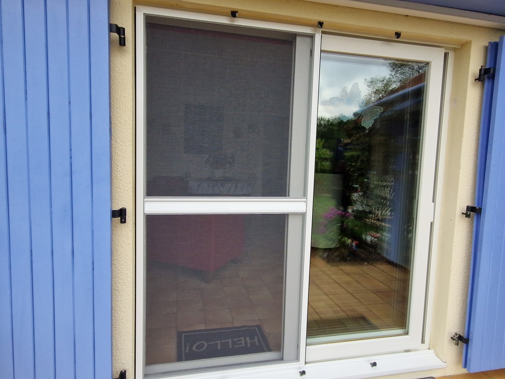 Si des volets roulants sont présents, un profil plus fin est utilisé pour la porte-moustiquaire coulissante.